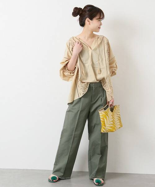 リネンリーフ刺繍ブラウス ふんだんに施したリーフ刺繍に 目が釘付け☆ やわらかなリネンレーヨンで仕立て、 着心地良くナチュラルな素材感も 魅力なブラウスです。 ナチュラルエスニックな装いにMarket(マーケット)エスニックエンブロイダリ―タッセル巾着バッグ ¥2,970 税込 ヨクバリネン・ミニヘリンボーンシャツワンピース# ¥5,500 税込 Market(マーケット)刺繍ブラウス ¥4,950 税込 インドコットン前開きティアードブラウス# ¥4,400 税込